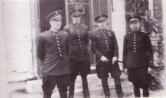 El capitán Manuel Tarazona Anaya (segundo por la derecha). A su lado, con figura espigada, el teniente José Villalonga Munar, que se puso del lado de los sublevados el 18 de julio.