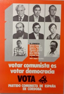 Cartel del Partido Comunista de España con sus candidatos por Córdoba en las elecciones legislativas de 1977. Seis de ellos aparecen en las listas negras.