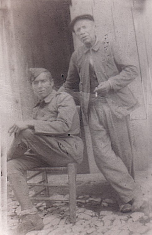 75.José Gómez Márquez, primero por la derecha en ambas fotos, preso en un batallón disciplinario de soldados trabajadores en Cherta (Tarragona).